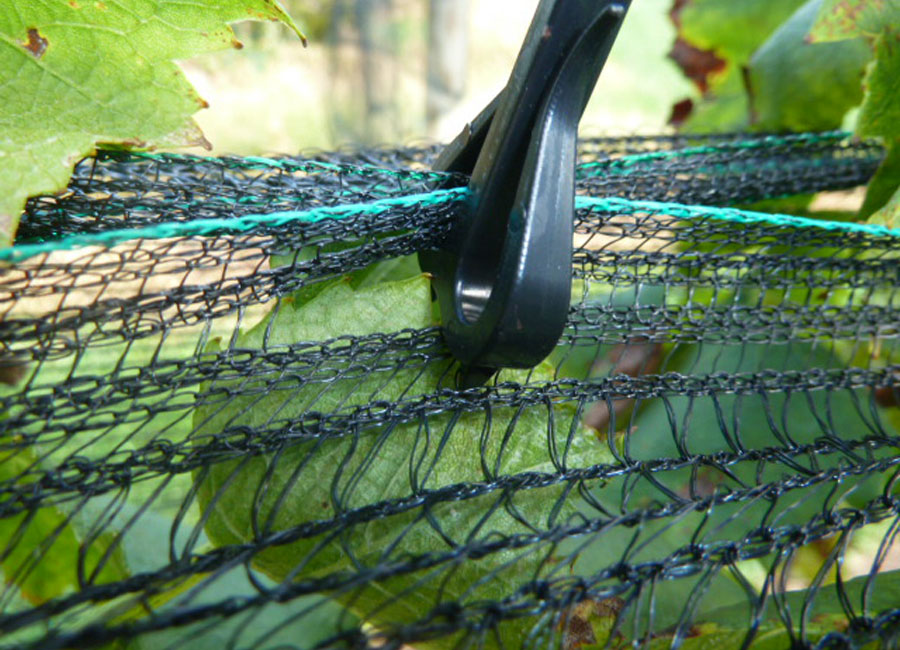 TUFFGARD PSPTuffgard Net is a heavy duty Permanent Side Panel (PSP) Net designed to be permanently attached to the vine trellis. Tuffgard PSP Nets provide crop protection in 5 easy steps! Click here to see how. Tuffgard is a heavy duty 3 x 5mm (>1/8”) triangle mesh side net that is suitable for permanent installation. Tuffgard offers enhanced protection from insects like wasp, yellow jackets and wildlife such as deer. Tuffgard is suitable for moderate to heavy bird pressure. Tuffgard also provides addtional moderate hail protection. Tuffgard has reinforced edges with eyelets every 3” for ease of attachment to the top or bottom wire. Tuffgard reduces handling and eliminates storage thereby greatly reducing application and retrieval costs. FEATURES